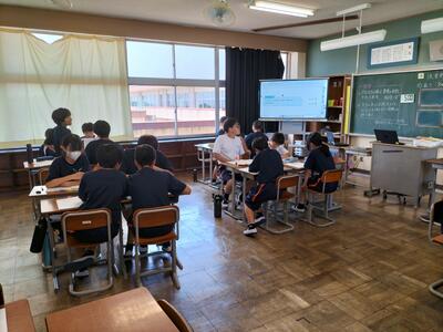本日、午前に学校運営協議委員、午後に日立警察署スクールサポーターの方々に来校いただきました。学校運営協議委員の皆様には、1年生「数学」、2年生「家庭」、3年生「保健」の授業を参観いただきました。どの学年の授業も、落ち着きがあり、集中していたとお褒めの言葉をいただきました。1年生のグループ学習では、友達と一緒に答えを考えていただけでなく、欠席している友達の机もグループに入れていたことがとてもよかったとお話がありました。