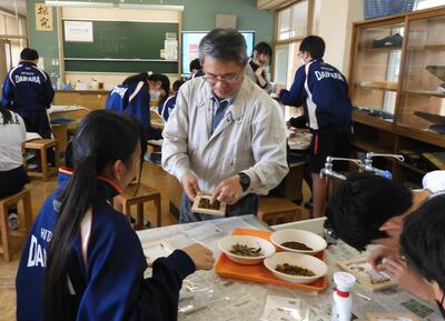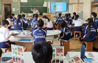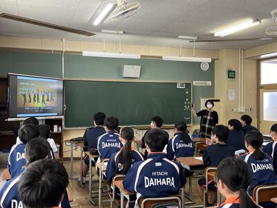 1学年の総合的な学習の時間に、茨城県環境アドバイザーである筑波大学名誉教授を講師としてお迎えし、土壌のはたらき、農作物に与える影響等について学びました。難しい内容もありましたが、映像や資料を見ながら、しっかりお話を聞くことができました。