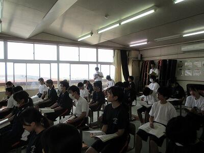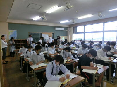 7/2(火)の5校時目に生徒指導訪問がありました。県北教育事務所の先生3名、日立市教育委員会の先生1名がに授業を参観していただきました。生徒たちが落ち着いて授業に取り組む様子や、今日の学習課題にどうも立ちと協議する様子にお褒めのことばをいただきました。
