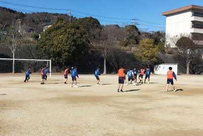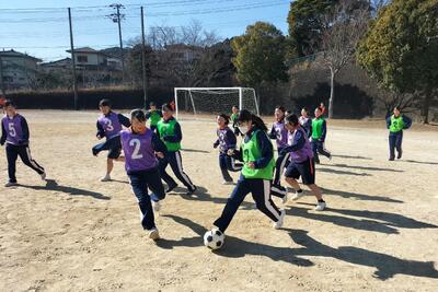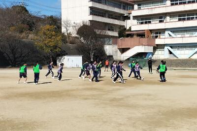 3年生の保健体育の授業では、サッカーを学習しています。通常のルールではなく、「パスを何回つないだらシュートしてもよいか」「盛り上げ役をつくる」「シュートの強さはどうしたらよいか」など、オリジナルのルールを適用し、誰もが楽しくゲームができるようにしました。最終的に、盛り上げ役は全員でとなり、一生懸命ボールを追いかけました。