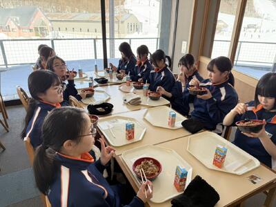2日目の昼食の様子 投稿: 承認者 (12:34) 昼食は牛丼をおいしくいただきました。生徒たちは最後まで元気に活動し、これから帰路につきます。学校到着まで安全に十分配慮してまいります。 Tweet -